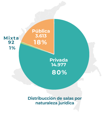 Actualmente se encuentran habilitadas 18.682 salas entre todos los prestadores. De estas, el 80% se encuentran en prestadores privados y el 19% en prestadores públicos. De las salas en prestadores públicos, el 49% se encuentran en prestadores de carácter municipal y el 63% en prestadores de primer nivel de atención.