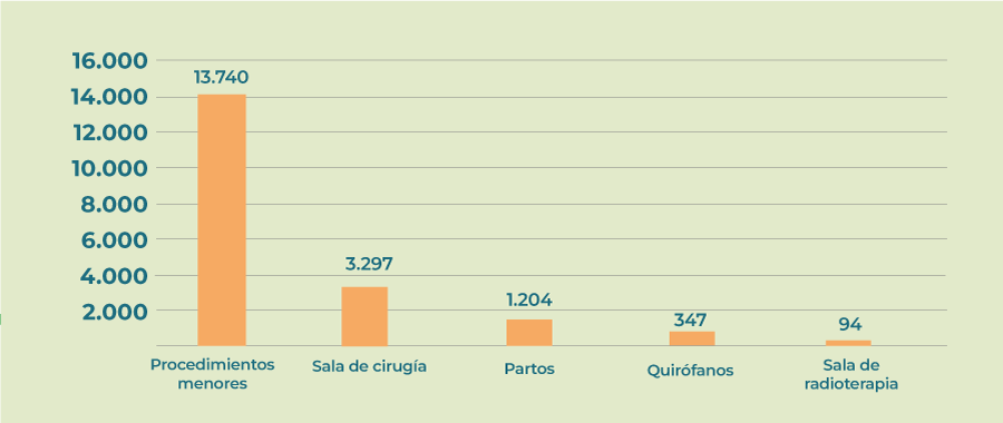 Según el tipo de sala, se encuentran habilitadas cerca de 14 mil salas de procedimientos menores, 3,3 mil salas de cirugía y mil doscientas para partos.